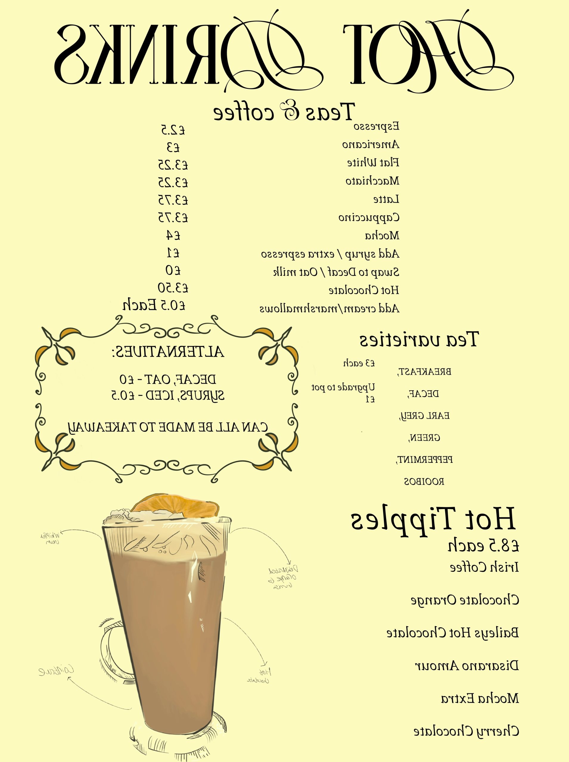 Here we have a selection of teas, coffees and hot tipples. All drinks can be taken on the boats.